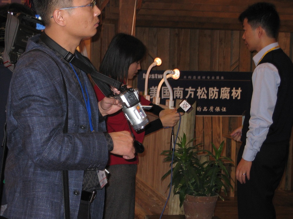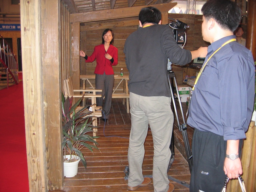 2003年住交會,接受中央電視臺采訪