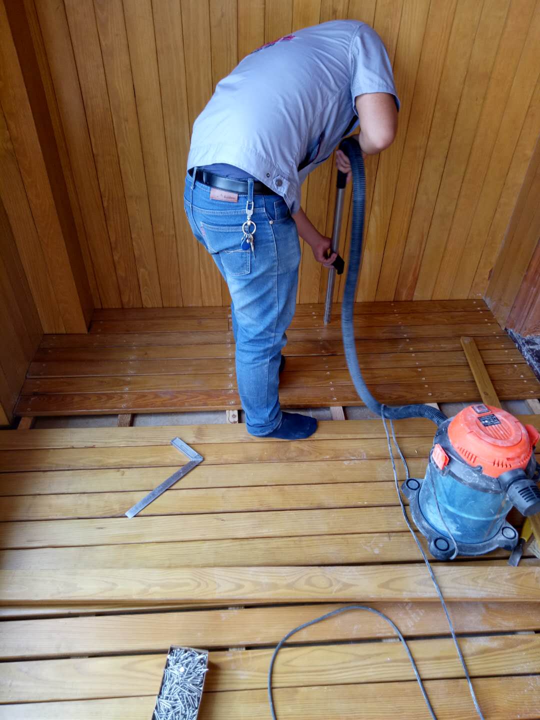 木陽臺定制施工前、中、后都要吸塵,避免木屑遺留在地板里,還業(yè)主一個潔凈的空間。