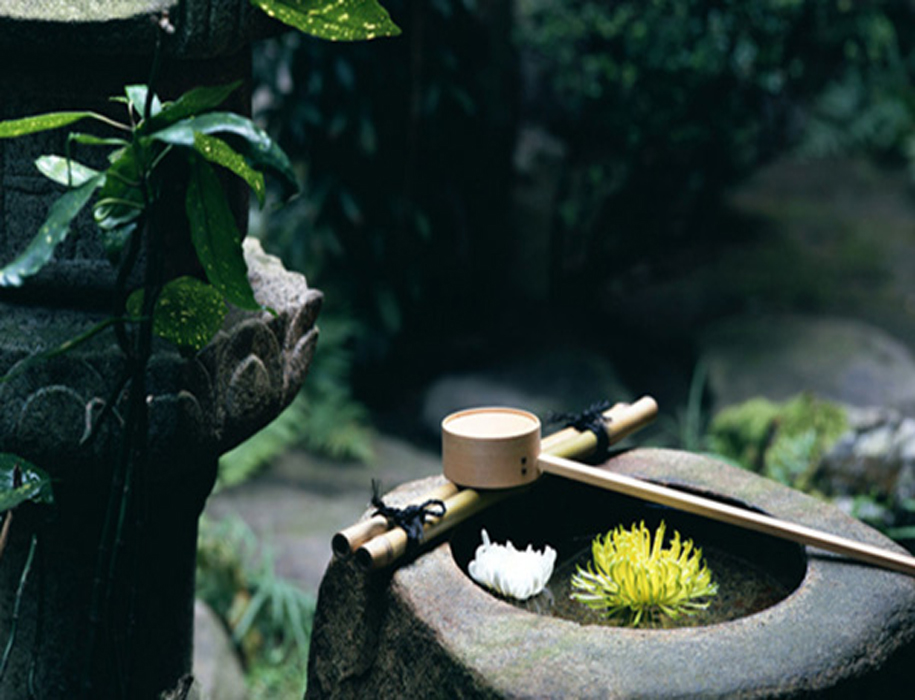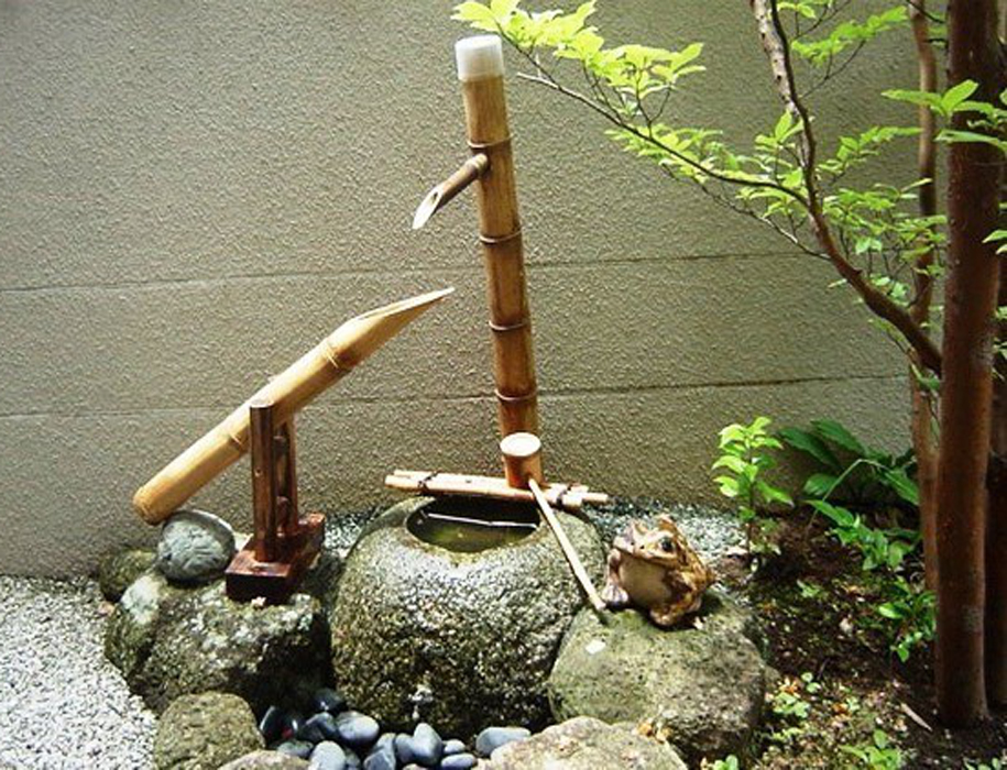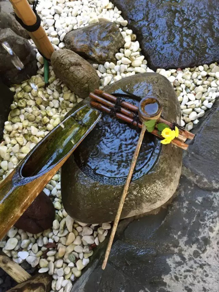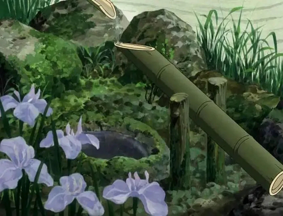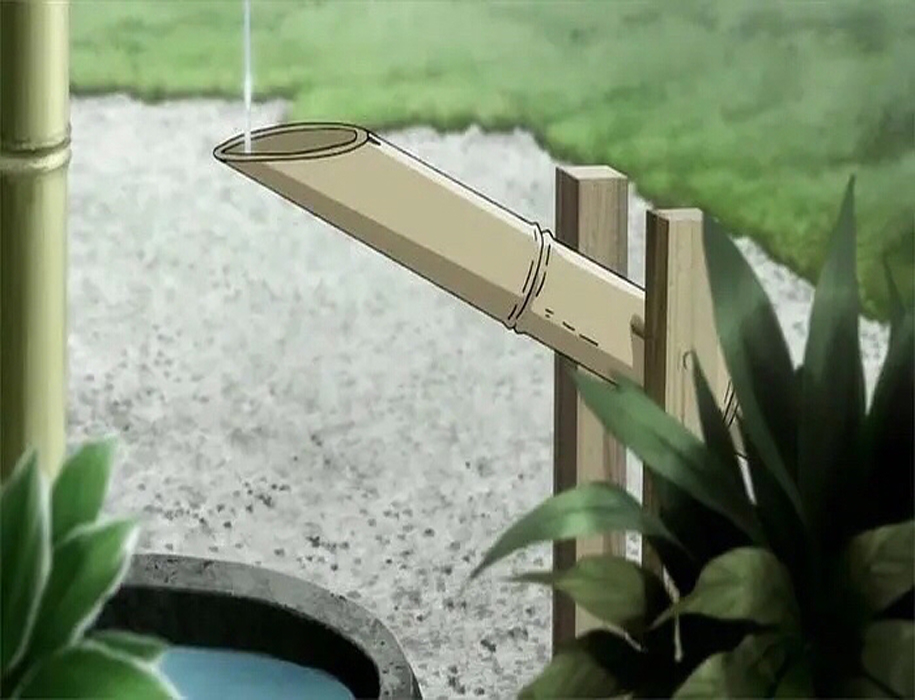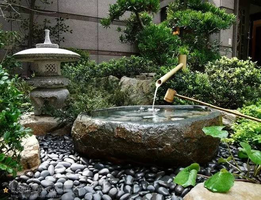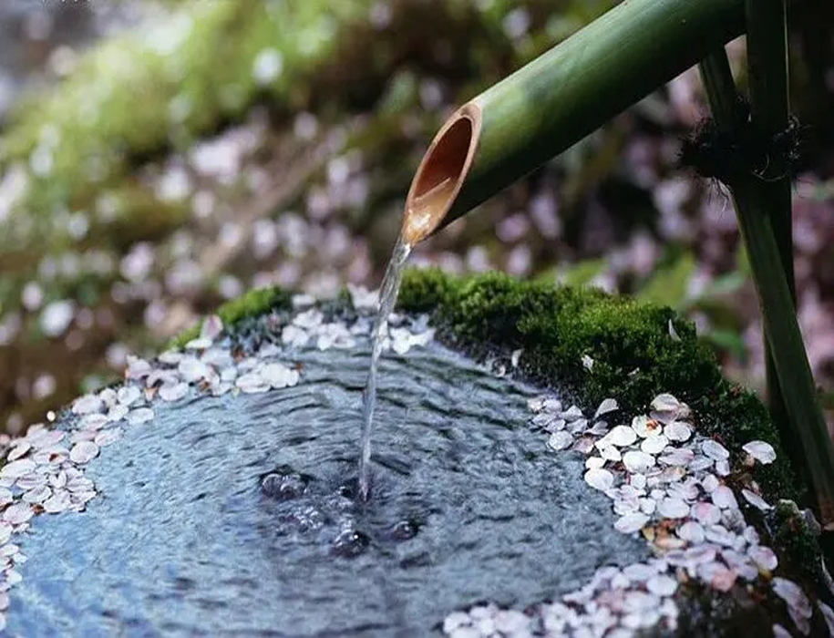到了后來漸漸演變成庭院的裝飾小品,也可用于洗手,在日本茶道的一項重要儀式;又因為有水和竹子敲打石頭的聲音,使得靜態(tài)的庭院景觀有了動態(tài)的感覺,蘊含了日本文化中的“禪”文化,因此也被稱為添水(そうず)、僧都(そうず)。