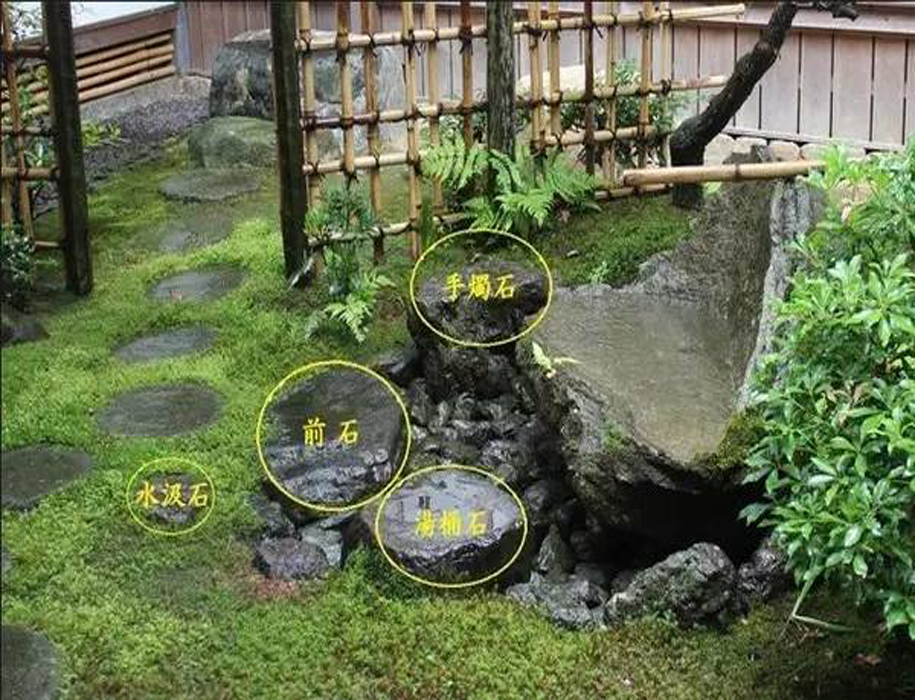 手水缽原用途是:在神佛前為漱口、清潔身體而做的盛水器皿。之后演變?yōu)樵诙巳〔杷畷r,放在空地上的石制洗手盆的形式。其注重自然石的野趣,也是茶道恬靜、古樸精神的具體化。適合在小型花園運用。